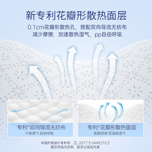 不添加荧光增白剂和甲醛,不刺激宝宝皮肤,穿着舒适。0.1厘米花瓣形散热孔,散热很快,皮肤接触安全健康。