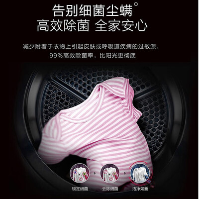 内置热泵低温烘干程序,低温吸走湿气烘干衣物,维持纤维活性,呵护衣物。内置双重除菌程序,深入纤维强效去除细菌,健康安心。