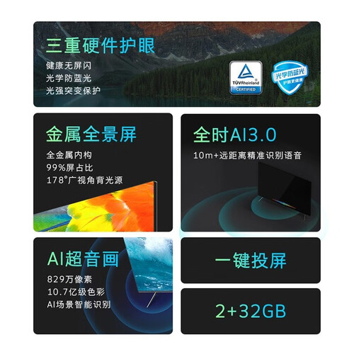 拥有三重护眼设计,无屏闪,防蓝光,帮助保护双眼。选用金属全景屏设计,屏占比高达99%,搭载广视角设计,看的更方便。