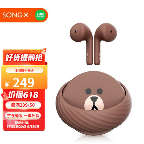 配备X-BASS超低频,高音低音都是清晰真实,带来有穿透力的声音。选用布朗熊棕为造型,可可爱爱,满足心里那一份纯真。