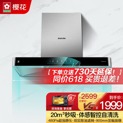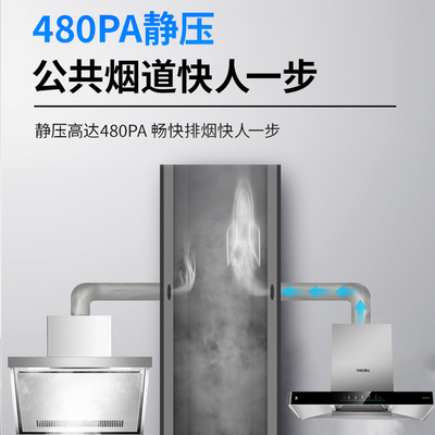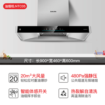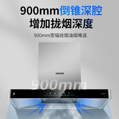 体感挥手,不需要触控按键,挥手就可以控制开关。900mm倒锥深腔,增加了拢烟的深度,保证在使用过程中油烟不扩散。