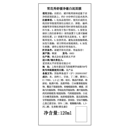 雪花秀 舒缓净澈白泥面膜