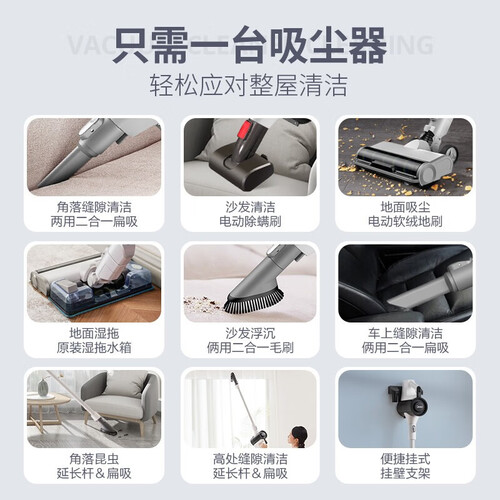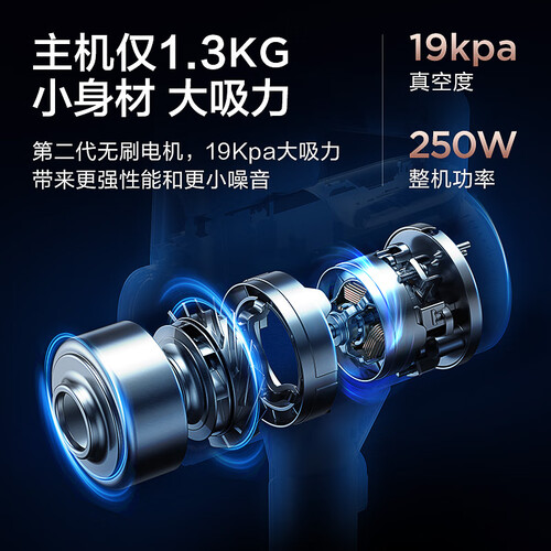 主机仅1.3KG,提拿方便,单手也可轻松操作。搭载11.5万转强动力,有效拔除各类微尘。