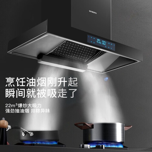 23立方米强劲吸力,无惧川菜爆炒,告别呛鼻异味。加宽风轮设计,快速畅排不堵塞,从容应对烹饪高峰期。