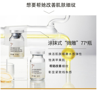 使用多肽成分,减少淡化细纹的功效,提升紧致肌肤轮廓。精华水质地柔润,容易吸收充盈饱满,达到深切补水的效果。