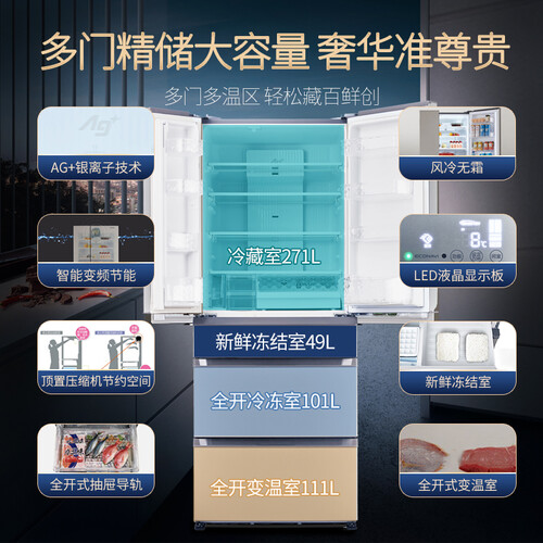 采用变频压缩机,自动调节转动速度,达到精准温控的同时,强效节能。搭载多温区分类收纳保鲜,锁住新鲜和营养。