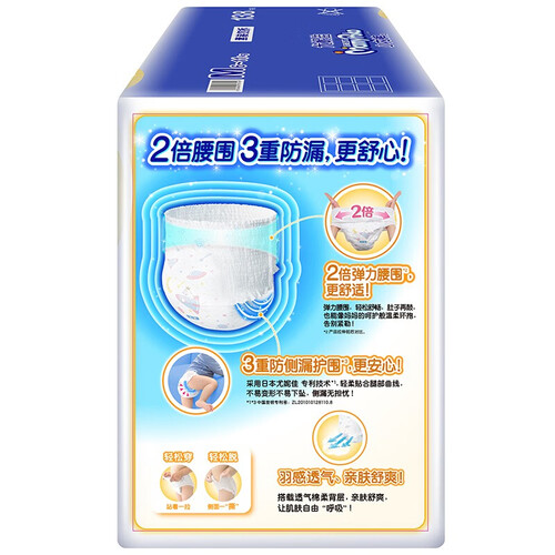拥有导流层设计,提高吸收速度,可以牢牢锁住尿液,不回渗。360°防漏设计,更好的贴合宝宝臀部,锁住尿液避免侧漏。