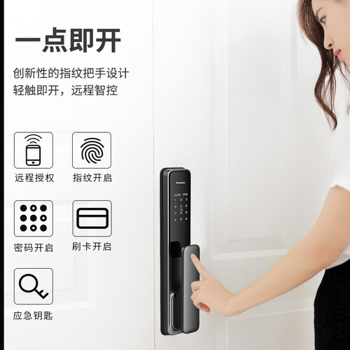 指纹传感器在推拉把手处,解锁时拇指可自然下落至指纹识别处,让开锁和进门同时进行。高性能芯片,运算更快,识别更准。