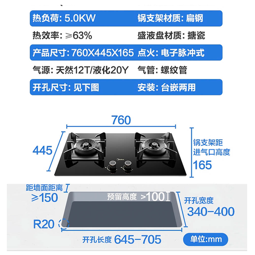 5.0kw大火力,火候充足饭菜生香,烹饪出来更有食欲,轻松应对一日三餐。760mm的曜石黑晶玻璃面板,经久耐磨。