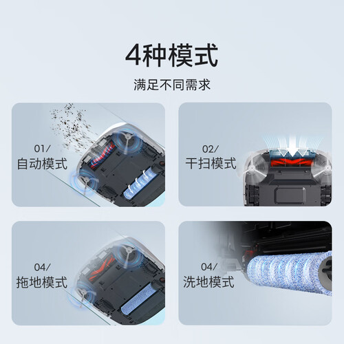可进行滚筒式主动清洗拖布,基站不易藏污纳垢,清洁更卫生。内置智能黑科技,节水有方,一次加水可清洁全屋,省水更省心。