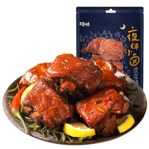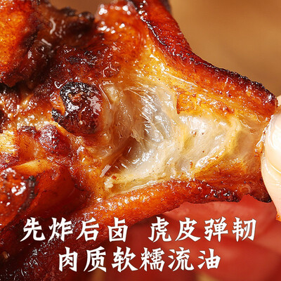 经过先炸后卤制作而成,让虎皮弹韧有光泽,增加咀嚼的口感。同时肉质软糯,流有油光,色泽诱人香浓好吃。