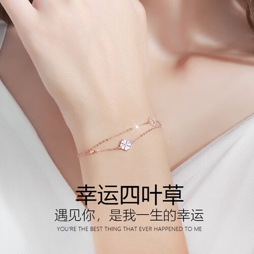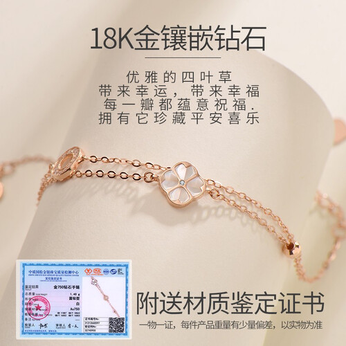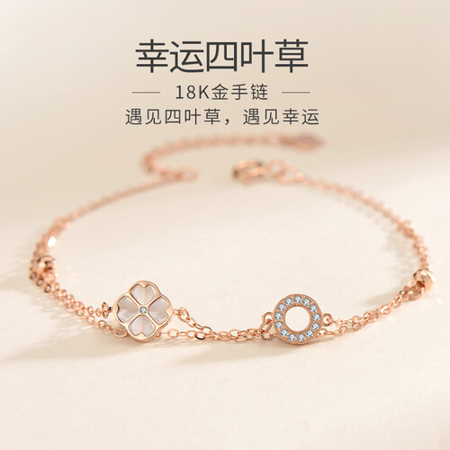 潮宏基 母贝四叶草K金手链
