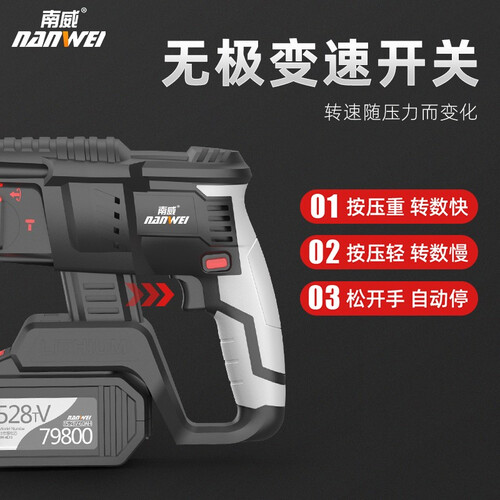 配置无刷电机,运行过程中不产生火花,提升运行效率,产生的转速和扭力更大,让家装更轻松。采用三元锂电芯,续航时间更持久。