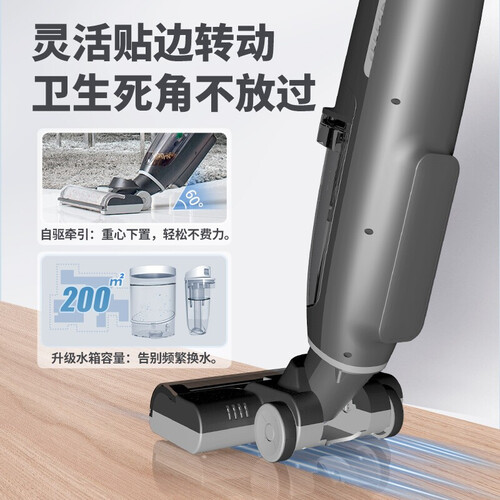 飓风大吸力,搭配滚刷轻松洗拖,吸毛除尘,一步到位;地刷贴边清扫设计,边边角角都能吸,全屋清洁无烦恼。