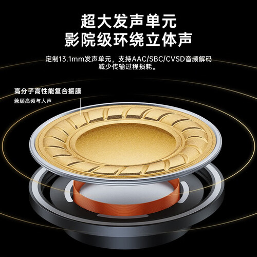 支持EQ个性定制化,手机APP上定制属于自己的听歌习惯。入耳检测,内置定制13.1发声单元,为你呈现千元级HIFI音质。