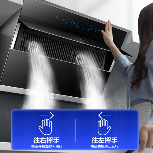 自动感应开火,随即启动油烟吸附,根据油烟量调控风力大小。台面设置防爆纤维网,耐受高温不开裂,防止桌面磕碰。