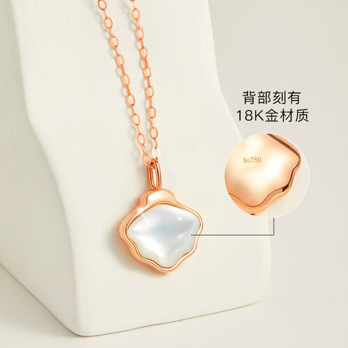 甄选18K金材质,色泽闪亮,具有不易褪色的特性,搭配镶嵌的洁白贝母,还有着爱你一辈子的美好寓意。