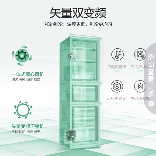 一体式离心风机,送风更加均匀,保障制冷的效果。矢量变频压缩机,全天候正常工作,能够让食材长期保持新鲜状态。