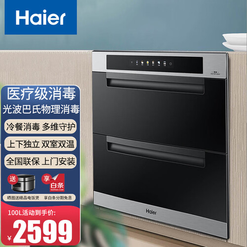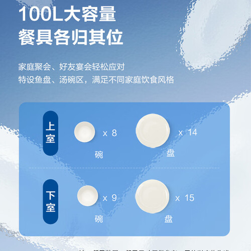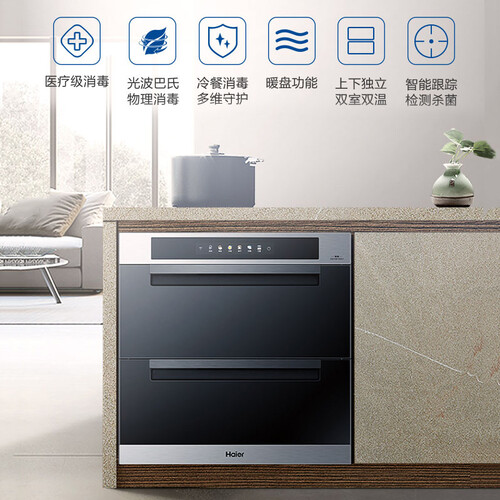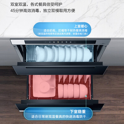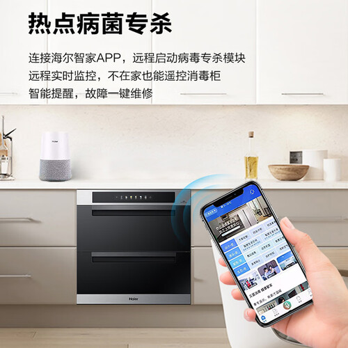 连接海尔智家APP,远程就能启动,不在家也能遥控工作,使用更方便。双温双室设计,分区呵护餐具,取用更方便。