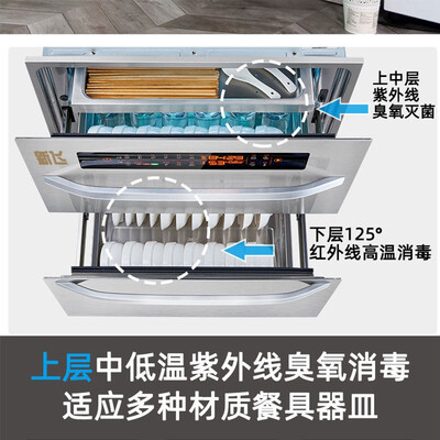 下层设计有安全童锁,一旦进入高温消毒状态,会自动锁住抽屉门,防止儿童误触碰。采用食品级304碗架,不易腐蚀生锈。
