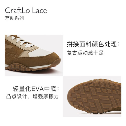 经典外形与现代材质融合,活力运动,舒适自由。轻量化的大底,外部凸点设计,增加摩擦力提升防滑性。