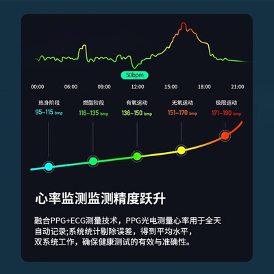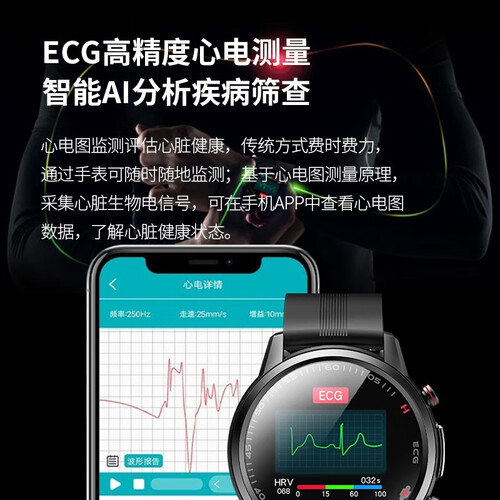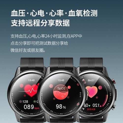ECG高精度心电监测,能够实时了解心脏健康状况,家人更安心。圆形设计带有机械设计感,充满炫酷感,更能彰显使用者品味。
