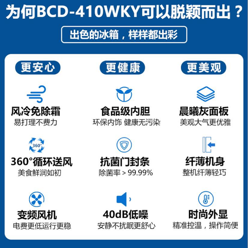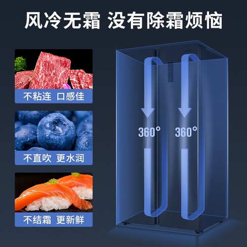 采用360°循环送风系统,立体环绕出风,食材冷冻不挂霜,有效保持持久鲜浓。具备61cm纤薄机身,灵活安装不受限制。
