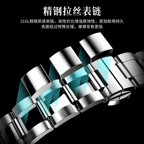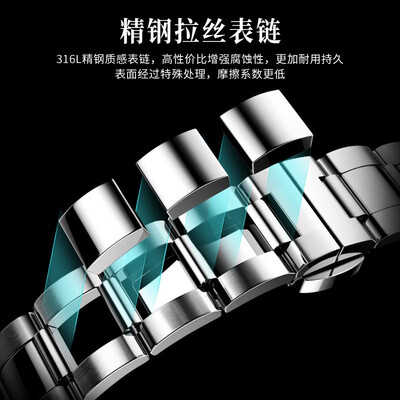 精选合成蓝宝石镜面,莫氏硬度仅次于钻石,尽享清晰读时。配有瑞士夜光粉,无惧昏暗环境,助你在白天黑夜都能查看时间。