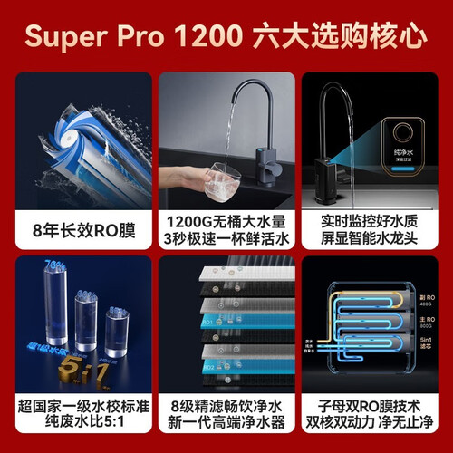八年长效RO滤芯更耐用,减少家庭支出使用更省心。无隔夜陈水直接饮用更安心,节约更多水资源避免浪费头杯水。
