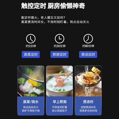 具备智能定时功能,加热时间随心选择,免看守设计更贴心。温感防烫红点,让用户能够准确知晓面板是否处于高热状态。