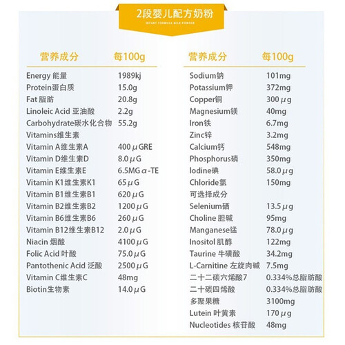 圣元 优博婴幼儿奶粉2段