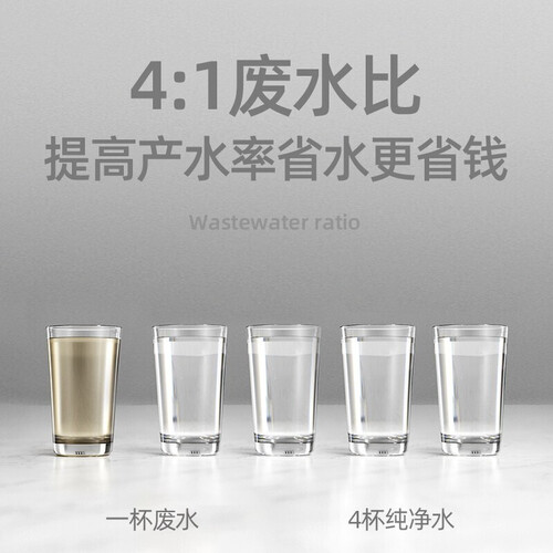 采用悬浮降噪设计,工作噪音低至44分贝,不会影响家人日常休息。低废水比设计,提高净水产出率,节能省水。