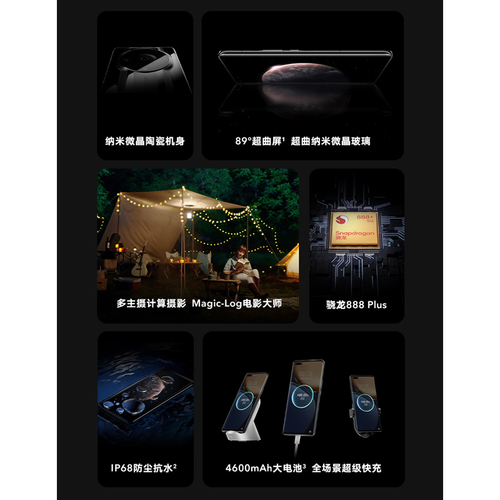 采用具有高透明、硬度强、可弯曲的超曲纳米微晶玻璃,并融合光学级玻璃胚体铸造工艺和高温模压技术,使得更加抗跌坚固。