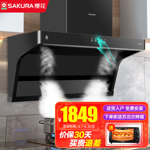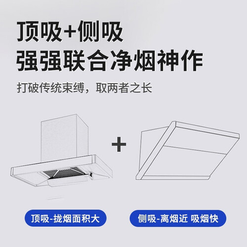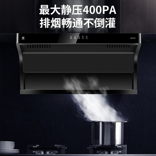 黑晶屏幕外观,带来时尚美感,丰富颜值,且光滑易清洁。顶侧双吸结构处理,带来两个进风口,排烟畅快无阻。