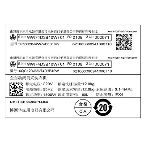 西门子大容量滚筒洗衣机