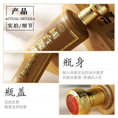 以酱紫色为瓶身,融合中国传统文化设计,尽显尊贵内敛。独特工艺匠心酿造,酱香浓郁,每一口都回味悠长,值得细细品尝。