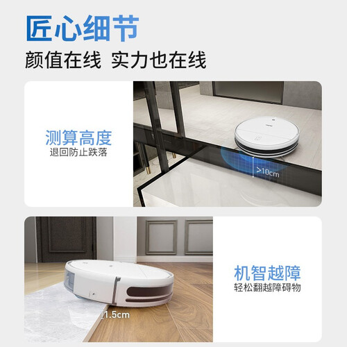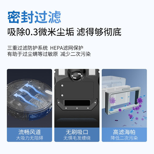 自带拖地功能,速度快,声音小,250毫升电控水箱,性能强劲,风力足,不同的地面可以对应不同的水量还可以自动出入。