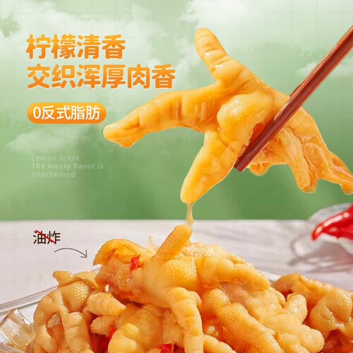 采用新鲜的柠檬泡制而成,搭载深度锁鲜技术,保留原本美味,口感新颖。甄选个大饱满的鸡爪,咀嚼起来有口感,韧劲适中。