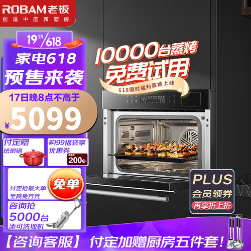 老板 专业品质 嵌入式蒸烤箱