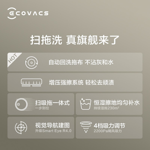 脏拖布自动回洗,不脏手方便省心;扫吸拖一体式设计,地面清洁一步到位;恒湿擦地,全程持续补水,帮助去除难擦污渍。