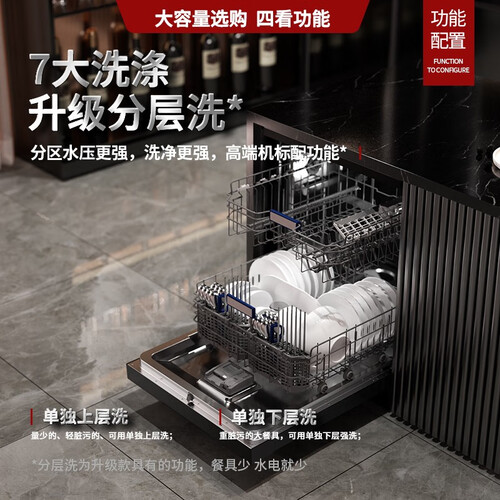 加强版热风烘干,餐具清洗完之后,水渍不再残留,餐具变得洁净干爽。上中下三重喷臂,清洁范围进一步扩大,满足日常清洗。