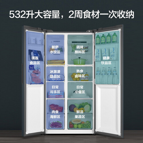DEO净味技术加持,能够主动吸附异味,让冰箱保持健康清新。一级双变频,运行稳定低噪音,不打扰家人睡眠。