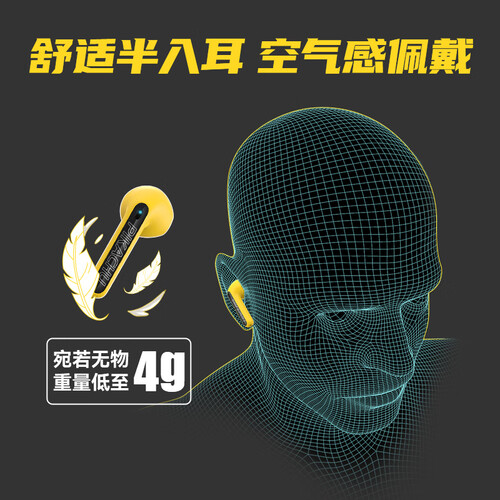 耳机重量低至4g,佩戴舒适无负重感,即使长时间佩戴,耳朵也不会肿胀酸痛。搭配12mm复合振膜单元,优质效果更加震撼。