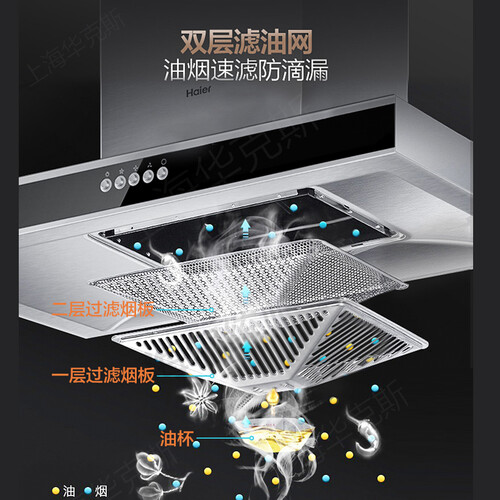 内置双重滤油网,能够快速的分离过滤,为油污导流,防止滴漏,搭配燃气灶使用的玻璃面板,清洁更加方便。
