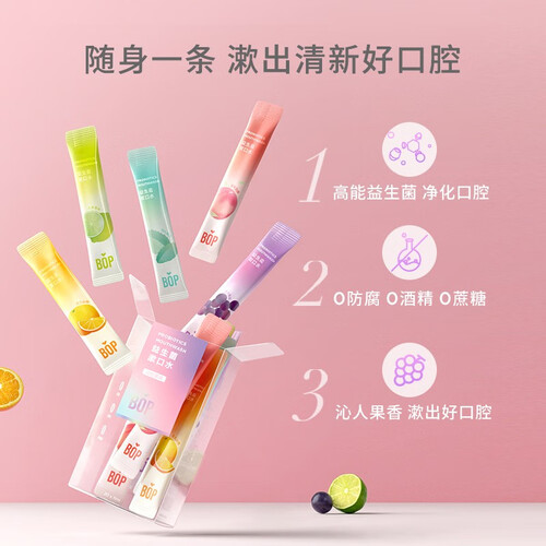 每瓶中含有10亿口腔益生菌,它能帮助口腔清洁异味,让口腔持久清爽。无化学防腐剂成分,健康原料,使用更安心。