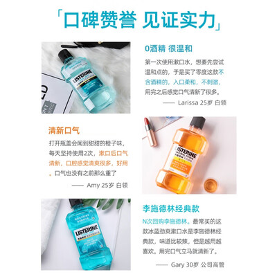 蕴含净化异味分子,可以改善难闻的口气问题,保持口气清新。采用温和无酒精配方,入口柔和舒适,无刺激感。