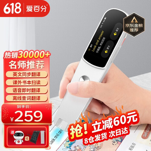 内置海量词库,拥有高达99%的识别翻译准确率,帮助用户轻松应对多场景的翻译需求。配置有1.9寸显示大屏,清晰呈现翻译结果。