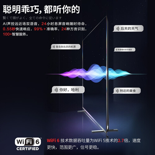 高精度AI声控助手,全天候等待指令,秒速响应更方便。属于无边悬浮屏结构,带来直观影视体验,畅享高品质影片。
