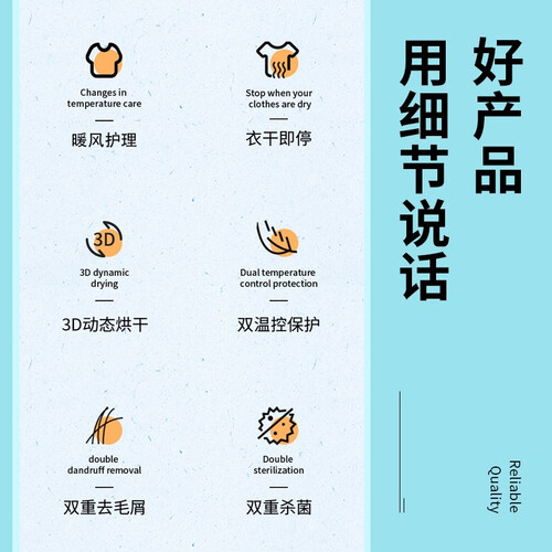 3D动态烘干,可以减少衣物的磨损,更好保护衣物材质。双重绒毛过滤系统,轻松收集皮屑、毛发等,避免残留影响健康。