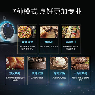 预设3D热风、大面积烧烤等七种模式,自由选择切换程序,烤制香酥有营养的食物。一键开启自清洁模式,深入清理污垢。
